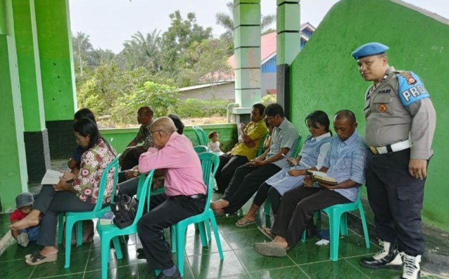 Polsek Penarik Laksanakan Pengamanan Ibadah di Gereja GKSBS Penarik Desa Lubuk Mukti