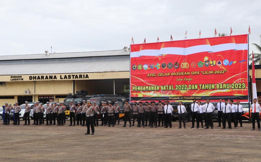 Apel Gelar Pasukan Ops lilin Nala 2022, Polda Bengkulu Siap Amankan Perayaan Natal dan Tahun Baru 2023