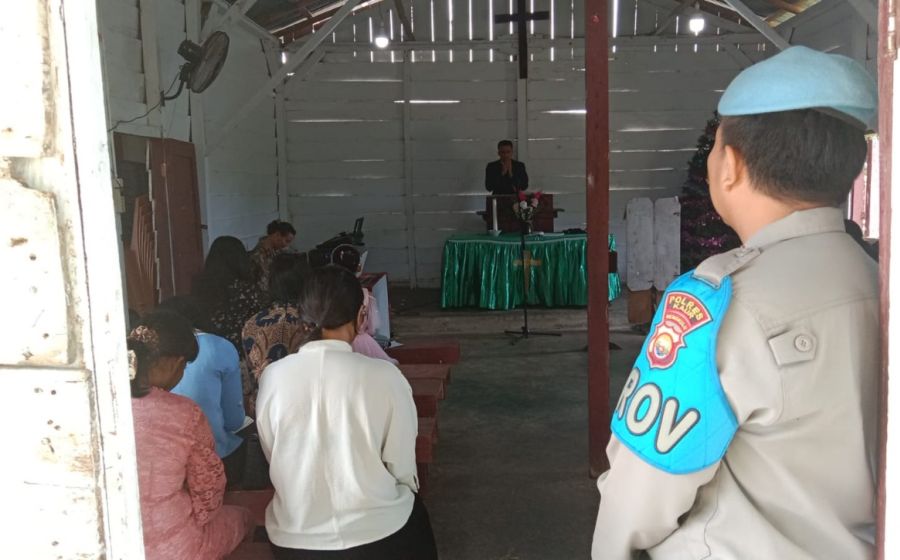 Pastikan Ibadah Berjalan Aman, Personel Polsek Kaur Selatan Patroli di Gereja