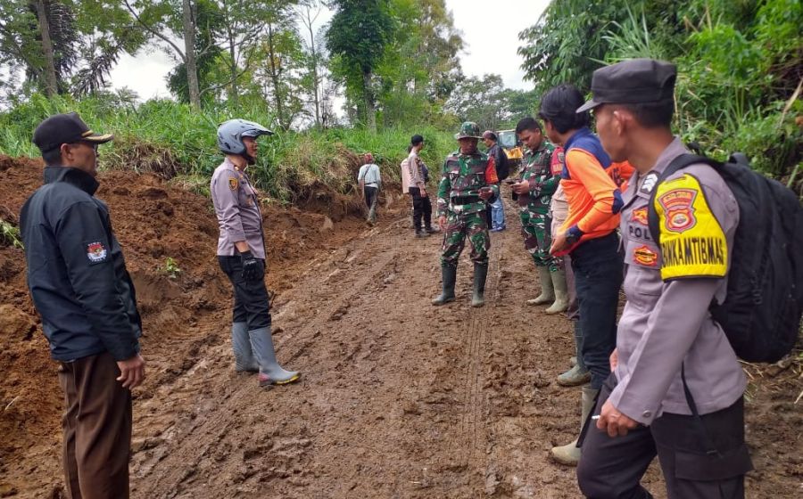 Bersinergi, TNI-Polri Bersihkan Material Longsor yang Menutupi Badan Jalan
