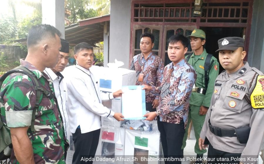 Personel Polsek Padang Guci Hilir, Lakukan Pengamanan Pergeseran Logistik Pemilu 2024 dari PPS Menuju TPS