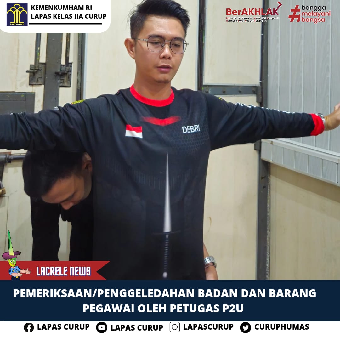 Curup - Penggeledahan Badan Pegawai Oleh Petugas (P2U). Sabtu (21/12). Penggeledahan badan ini dilakukan sebagai langkah keamanan yang penting untuk mencegah masuknya barang terlarang atau benda-benda yang dapat mengakibatkan terjadinya gangguan keamanan dan ketertiban.