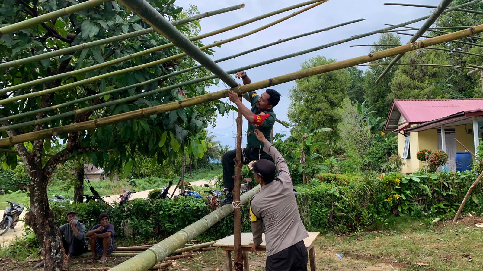 Bengkulu Utara - Demi terciptanya situasi Kamtibmas yang kondusif, Babinsa Koramil 423-06/ Enggano bersinergi dengan Bhabinkabtibmas Polsek Enggano Polres Bengkulu Utara Polda Bengkulu, melaksanakan Gotong royong kerumah salah seorang warga binaanya An. Bapak yopi yang akan melaksanakan Acara Aqiqah Anaknya bertempat didesa Apoho Kecamatan Enggano Kabupaten Bengkulu Utara, Kamis (15/06/2023).