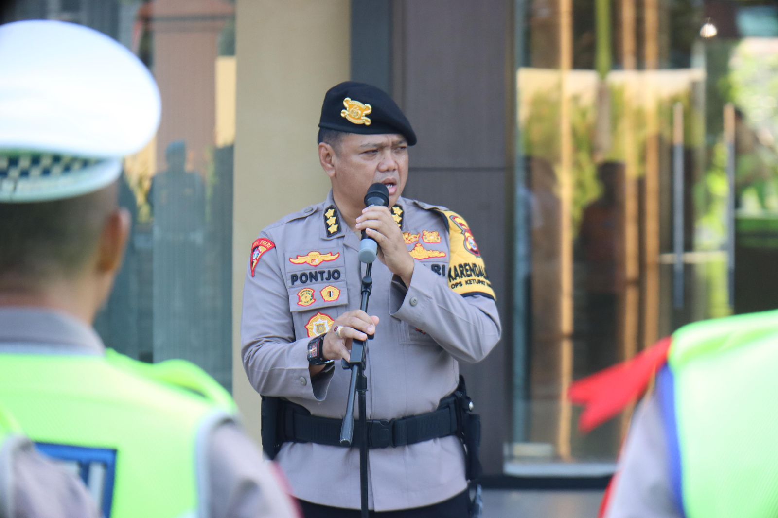 “Kepada seluruh personel yang terlibat dalam Operasi Ketupat Nala 2026 agar melaksanakan tugas dengan penuh tanggung jawab, memberikan pelayanan terbaik kepada masyarakat serta memastikan keamanan dan kelancaran lalu lintas selama periode Lebaran. Dengan kerja sama dan kesiapsiagaan seluruh personel, kita harapkan masyarakat dapat melaksanakan perjalanan dengan aman sehingga terwujud Mudik Aman, Keluarga Bahagia,” ujar Kombes Pol. Pontjo Soediantoko.