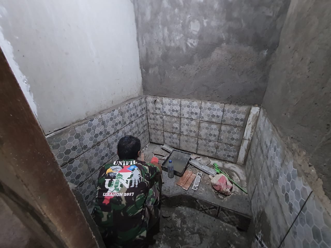 Dalam proses perbaikan berlangsung, terlihat dengan penuh semangat dan hati-hari para anggota Satgas TMMD tersebut mulai melakukan pemasangan keramik.