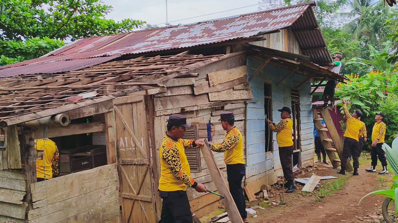 Menyambut HUT Bhayangkara Ke-78, Polsek Padang Jaya Gotong Royong Bedah Rumah Warga