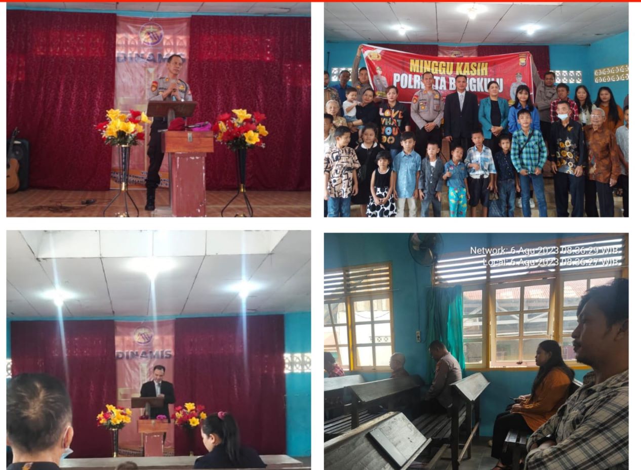 Kali ini Minggu Kasih Dipimpin Kasat Samapta Polresta Bengkulu AKP Yans Irvai Barus,S.H di Gereja Kristen Kemah Daud (GKKD) Kelurahan Sidomuliyo Kecamatan Gading Cempaka Kota Bengkulu, Minggu (06/08/2023).