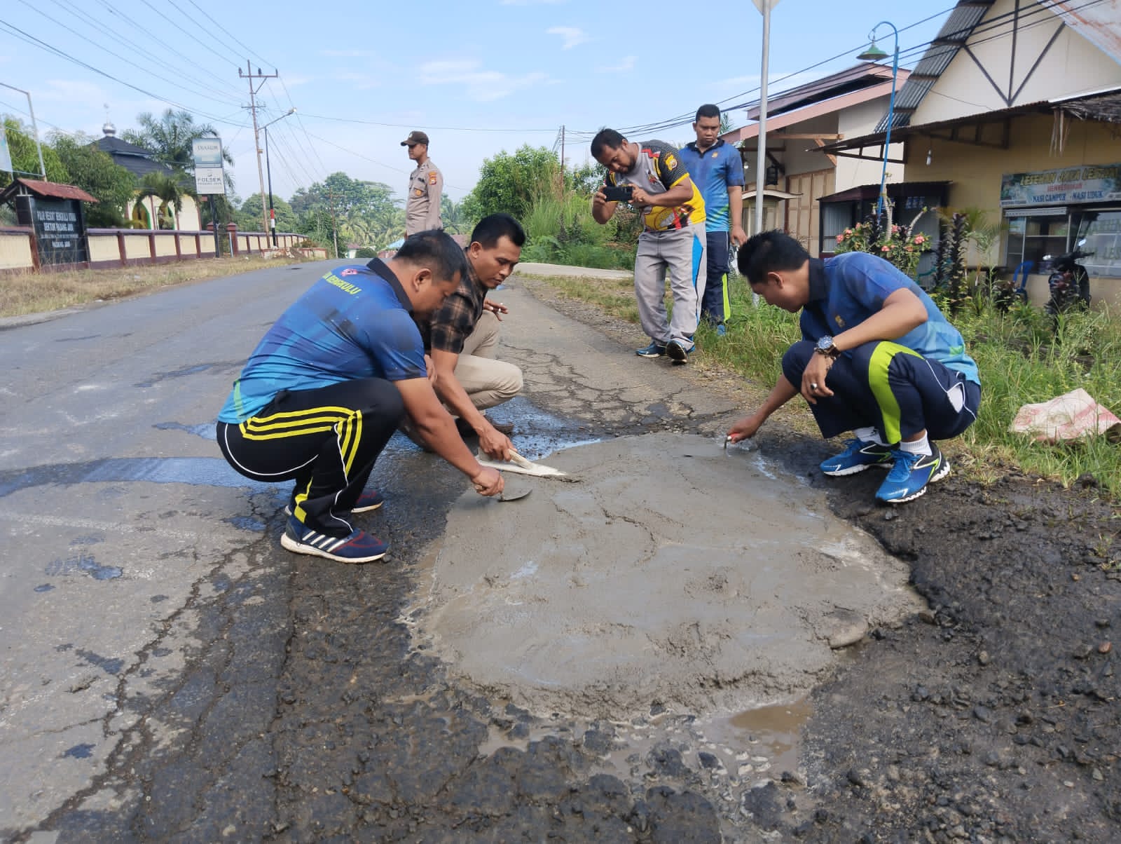 Penambalan jalan dari Polsek Padang Jaya itu untuk mengantisipasi semakin banyaknya pengguna jalan yang terjatuh akibat jalan yang berlubang.