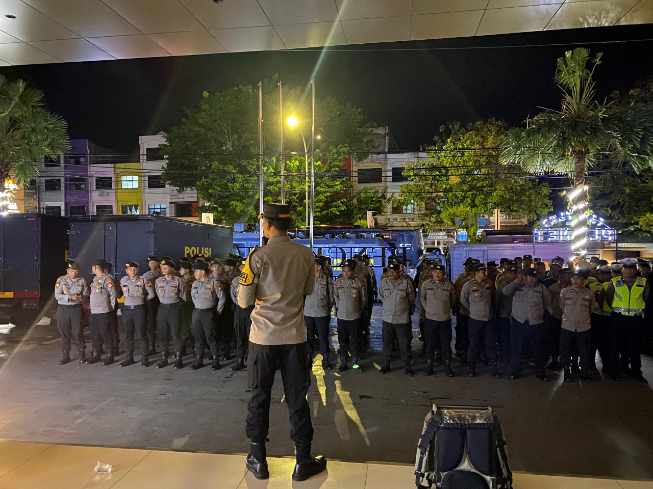 Bengkulu - Karendalopsresta Bengkulu melaksanakan Konsolidasi selesainya giat Pegamanan Rapat Pleno tahap Rekapitulasi tingkat Provinsi hari pertama pada personel Satgas Gabungan Polda/Brimob/Polresta yang terlibat Ops Mantap Brata Nala 2023-2024 di halaman depan hotel Mercure, Rabu (06/03/2024) malam.