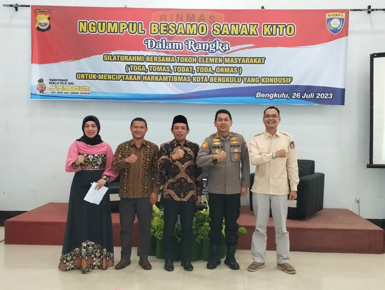 BENGKULU – Memperkuat keamanan dan ketertiban masyarakat (Kamtibmas), Polresta Bengkulu menggelar Focus Group Discussion (FGD) dengan tema “Ngumpul Besamo Sanak Kito dalam rangka Silahturahmi Bersama Tokoh Elemen Masyarakat untuk Menciptakan Harkamtibmas Kota Bengkulu”.