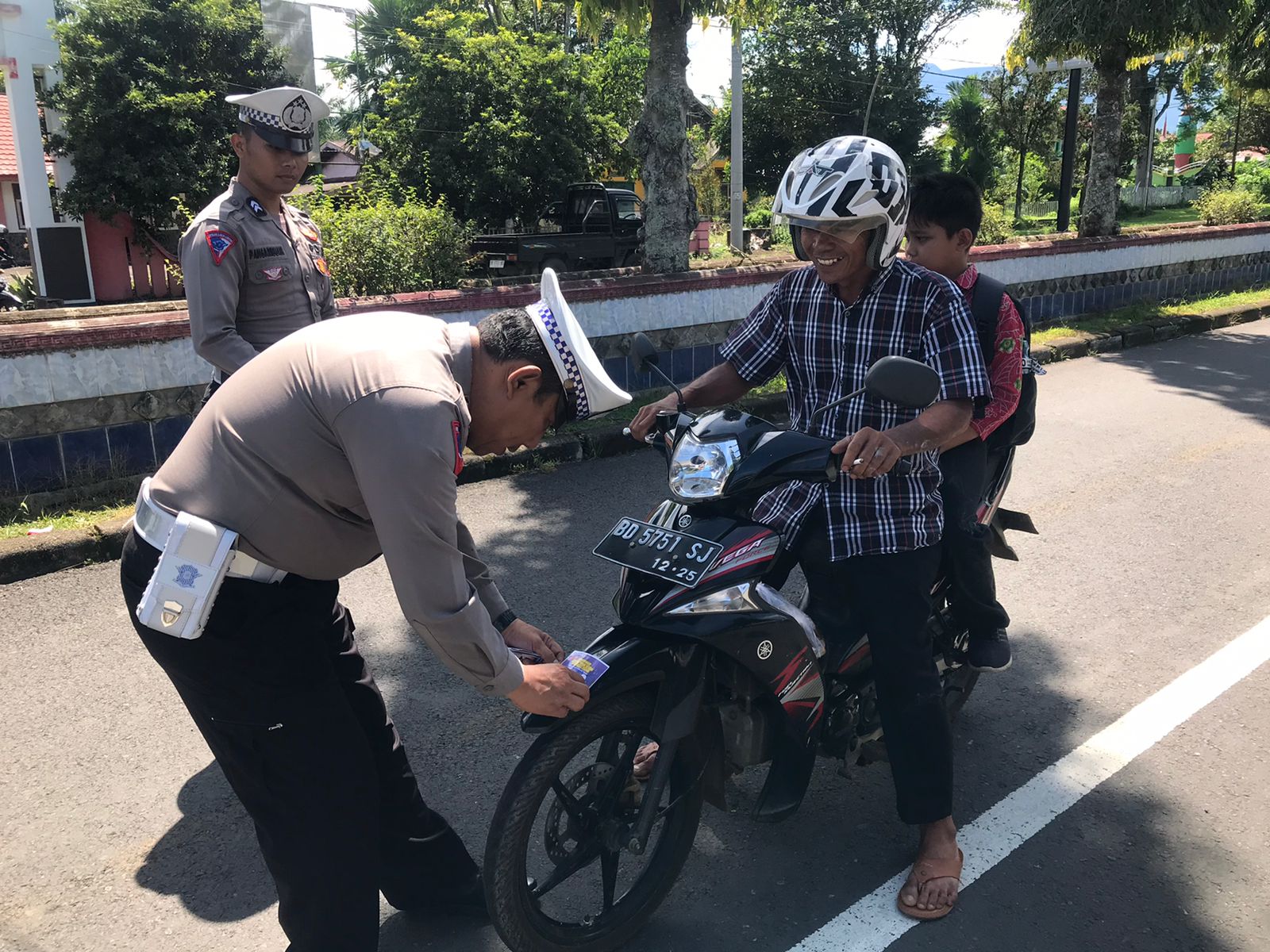 Bengkulu Utara - Personel Satuan Lalu Lintas (Satlantas) Polres Bengkulu Utara terus aktif melakukan sosialisasi dan imbauan kepada masyarakat untuk tidak menggunakan knalpot brong / knalpot tidak sesuai spesifikasi teknis. Salah satu upaya yang dilakukan adalah dengan membagikan stiker imbauan larangan penggunaan knalpot brong. (24/04/2024).