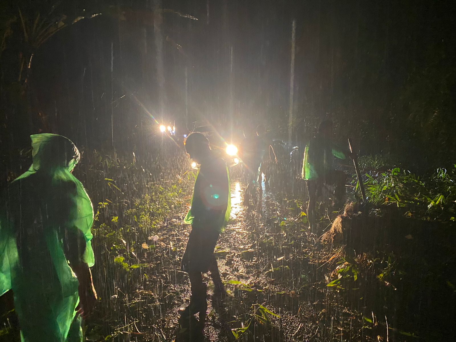 Lebong - Personel Polsek Rimbo Pengadang Polres Lebong Polda Bengkulu pada Kamis (6/7/2023) malam sekira pukul 21.00 WIB, membersihkan material longsor yang menutup badan jalan Curup-Muara Aman, tepatnya di Desa Talang Ratu Kecamatan Rimbo Pengadang Kabupaten Lebong.