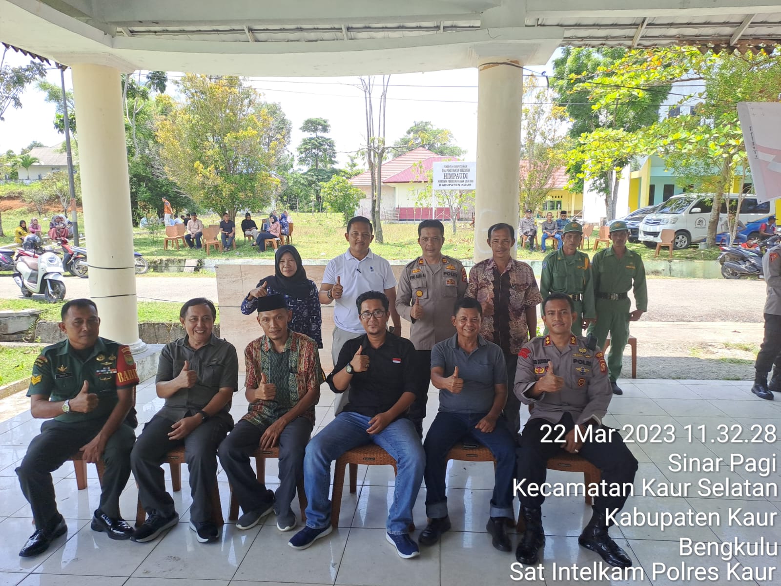 Kaur - Kepolisian Sektor Kaur Selatan Polres Kaur Polda Bengkulu, lakukan pengamanan Pemungutan Suara Pemilihan Kepala Desa Antar Waktu (PAW) Desa Sinar Pagi, Rabu (22/3/2023).