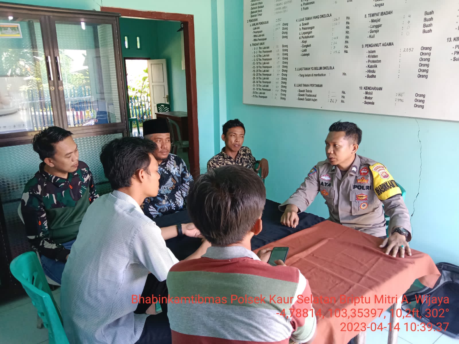 Kaur - Polsek Kaur Selatan Polres Kaur Polda Bengkulu, menggelar kegiatan Jumat Curhat di GSG Desa Jembatan Dua Kecamatan Kaur Selatan, Kabupaten Kaur, Jumat (14/4/2023).