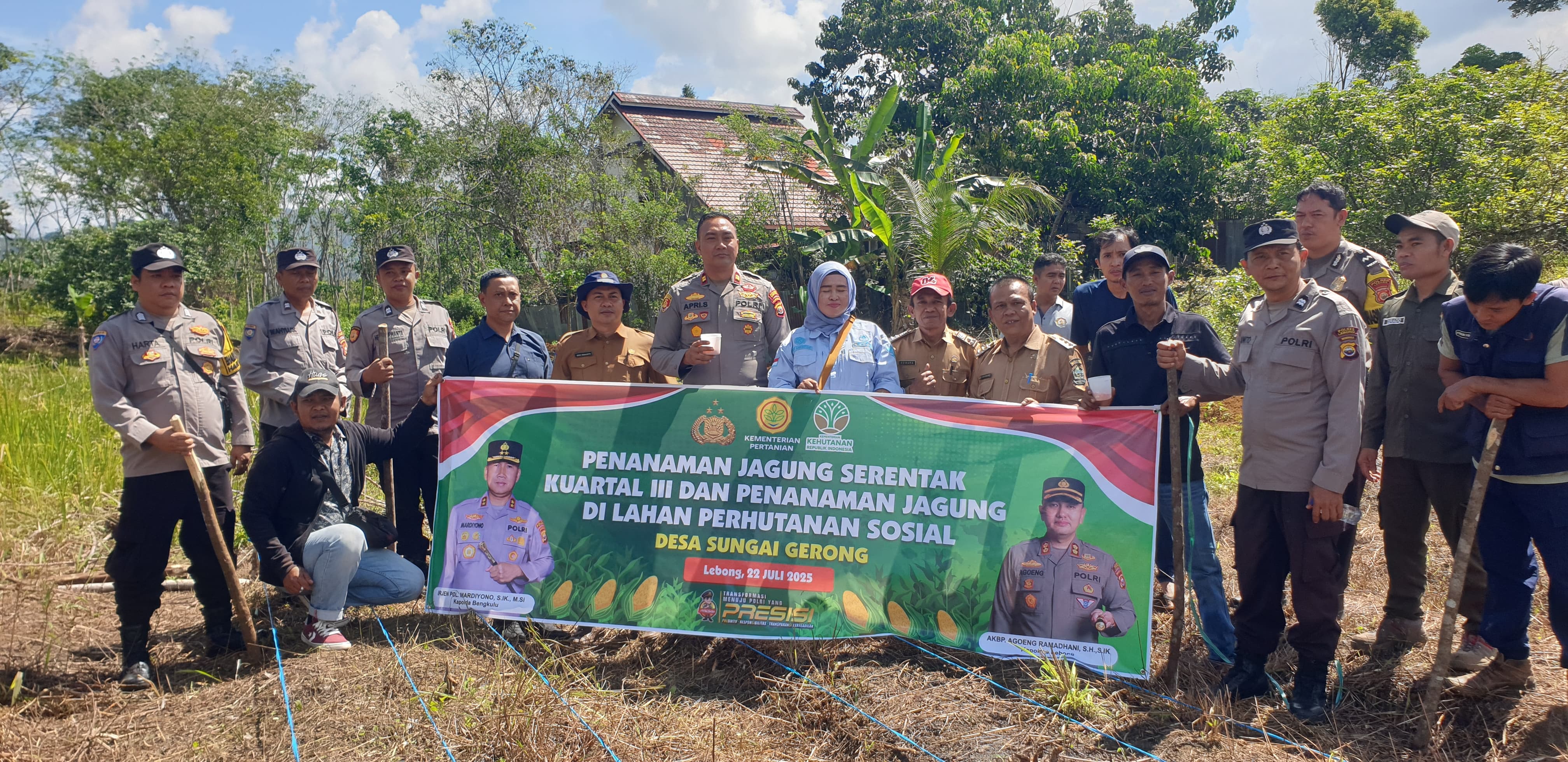 Lebong - Polsek Lebong Utara Polres Lebong Polda Bengkulu, pada Selasa (22/7/2025), melaksanakan kegiatan penanaman jagung serentak kuartal III di Desa Sungai Gerong Kecamatan Amen.