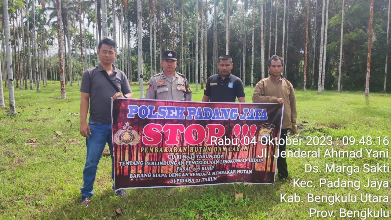 Bengkulu  – Personel Polsek Padang Jaya Polres Bengkulu Utara Polda, melaksanakan pencegahan dan penanggulangan kebakaran hutan dan lahan (Karhutla) di wilayah Kecamatan untuk memantau dan mencari tanda-tanda kebakaran potensial.