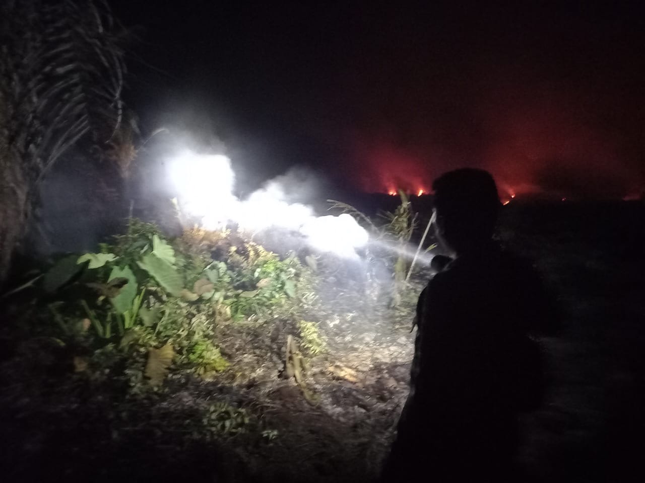Sekira pukul 19.30 WIB Personel Polsek Talo mendatangi lokasi Kebakaran, dan melihat sebagian lahan sudah padam terbakar dan api masih menjalar ke kebun lainya.