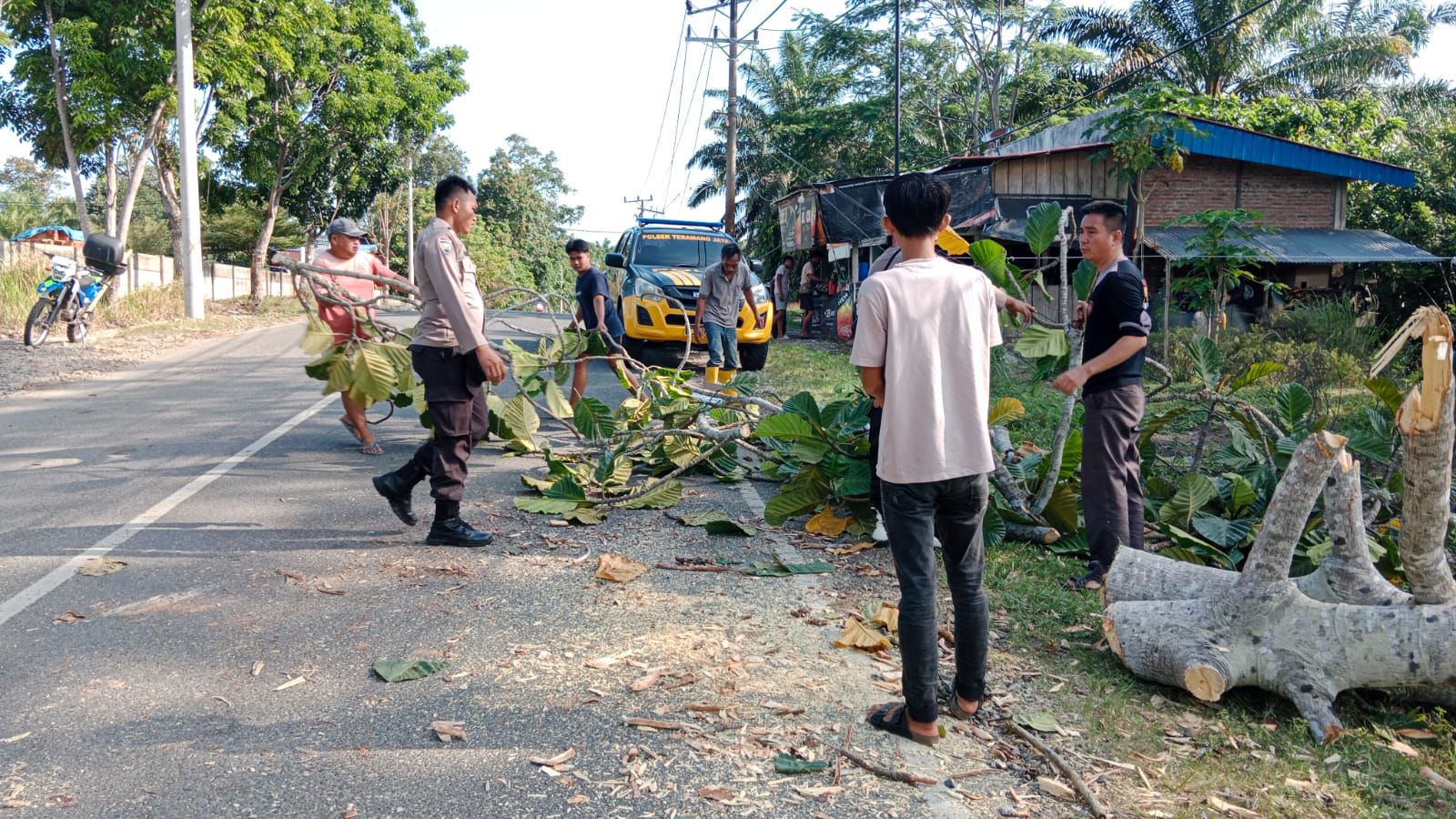 Polsek Teramang Jaya Bersama Warga Bersihkan Pohon Tumbang