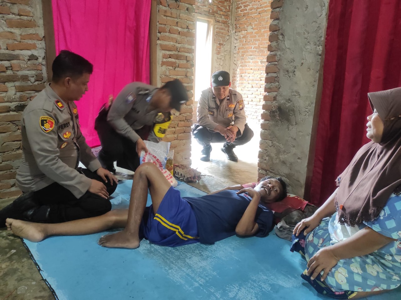 "Pemberian bantuan sembako berupa Beras 5 Kg, minyak goreng dan telur, kali ini kita serahkan ke Rasiun (40) warga Desa Tanjung Baru," jelas Kasi Humas.