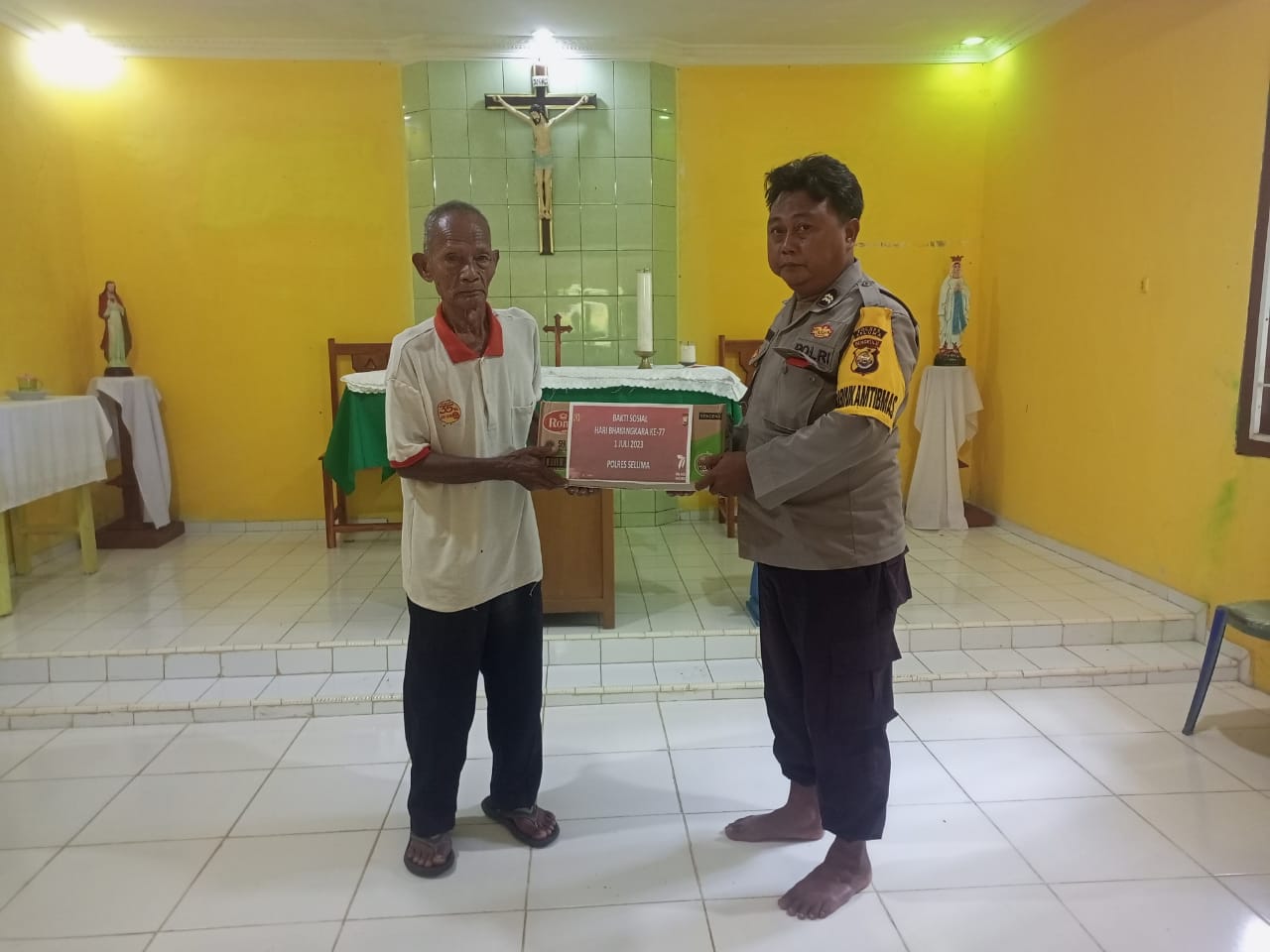 Dalam giat Bansos tersebut personel Polsek Talo juga melaksanakan kebersihan Gereja Santa Maria.