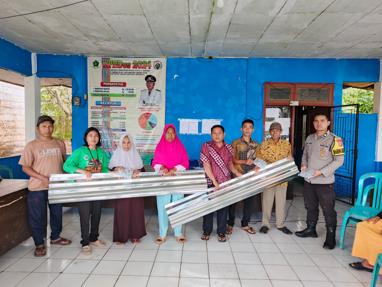 Lebong - Sambang, Bhabinkamtibmas Polsek Lebong Atas Polres Lebong Polda Bengkulu, Brigpol Waas Sab, memonitoring pembagian seng bagi warga, di Desa Tabeak Blau I Kecamatan Lebong Atas Kabupaten Lebong, Jumat (13/12/2024).