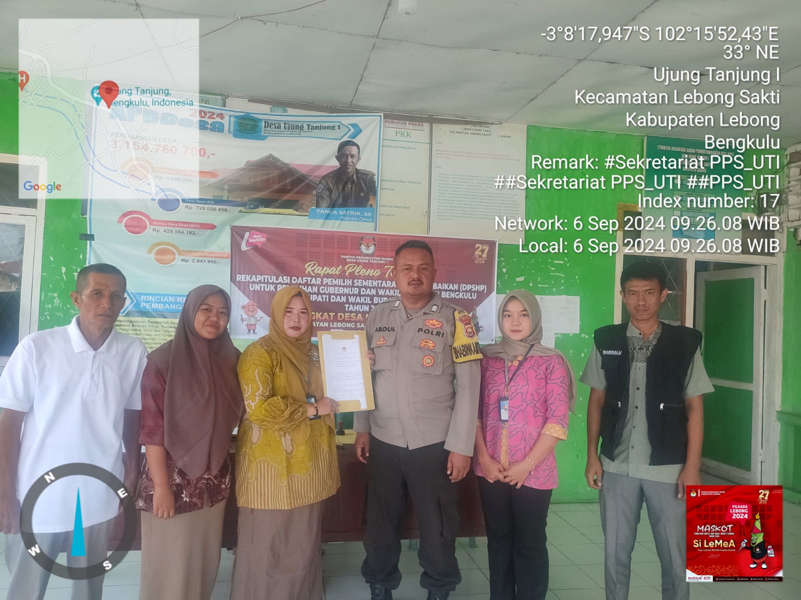 Lebong - Dalam rangka meningkatkan sinergi, Bhabinkamtibmas Polsek Lebong Tengah Polres Lebong Polda Bengkulu, Bripka Abdul Alamsyah, melaksanakan sambang dan menghadiri Rapat pleno terbuka Rekapitulasi Daftar Pemilih Sementara Hasil Perbaikan (DPSHP) untuk Pemilihan Gubernur dan Wakil Gubernur Bengkulu, serta Bupati dan Wakil Bupati Lebong Tahun 2024, ditingkat desa.