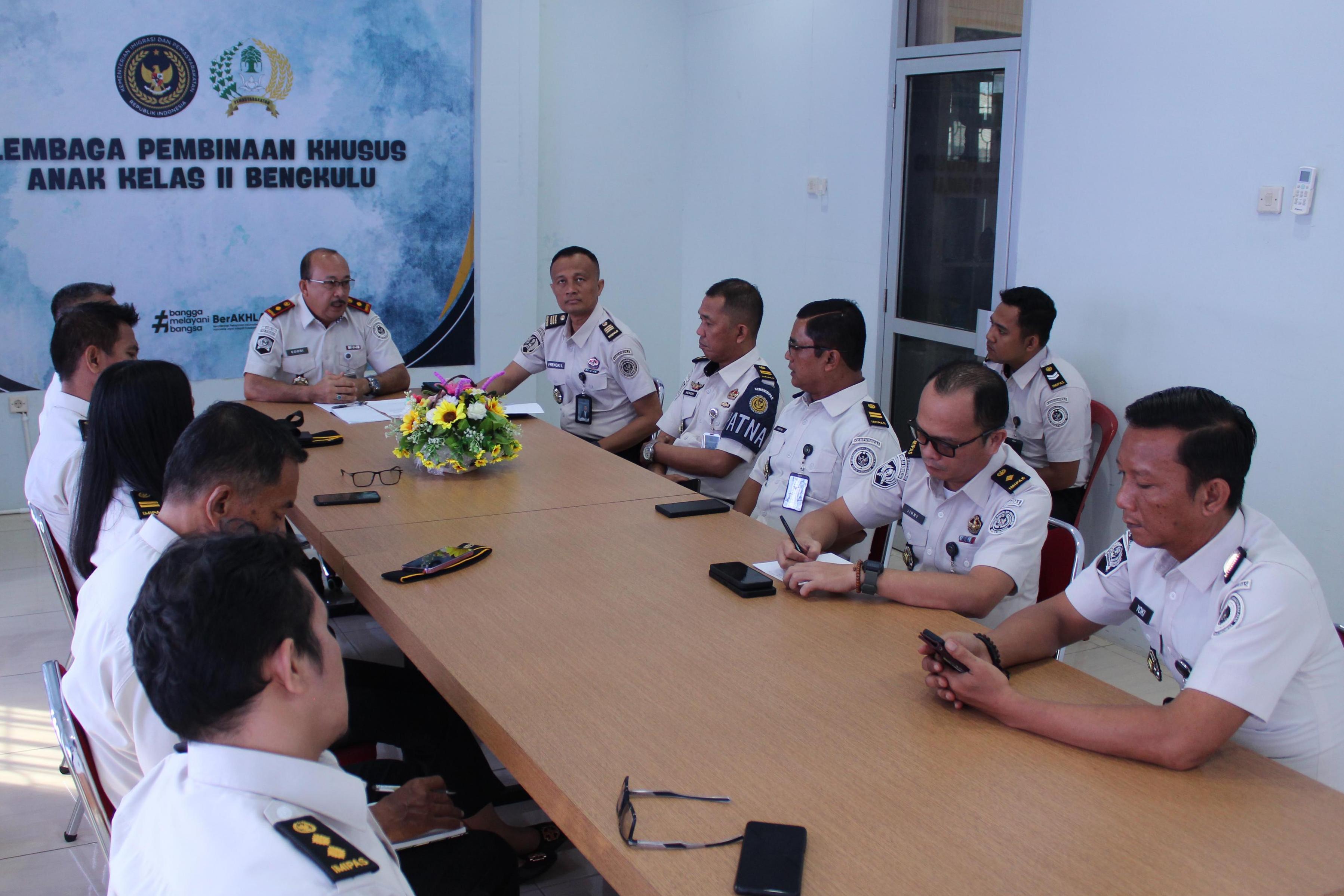 BENGKULU - Kepala Lembaga Pembinaan Khusus Anak (LPKA) Kelas II Bengkulu, Elizama Gori, memimpin rapat koordinasi internal bersama seluruh jajaran pejabat struktural.