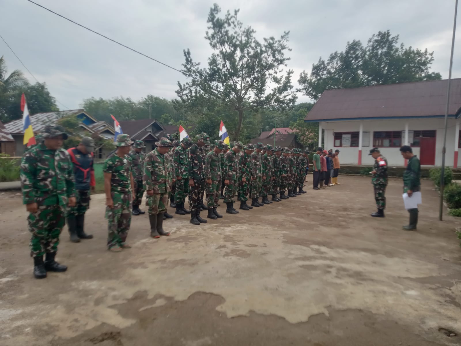 Dengan postur tegap dan suara lantang penuh motivasi, Dansatgas memberikan arahan serta penekanan penting kepada seluruh personel agar senantiasa menjaga disiplin, kekompakan, dan semangat kerja dalam menjalankan seluruh kegiatan TMMD yang tengah berlangsung di Desa Batu Raja R.