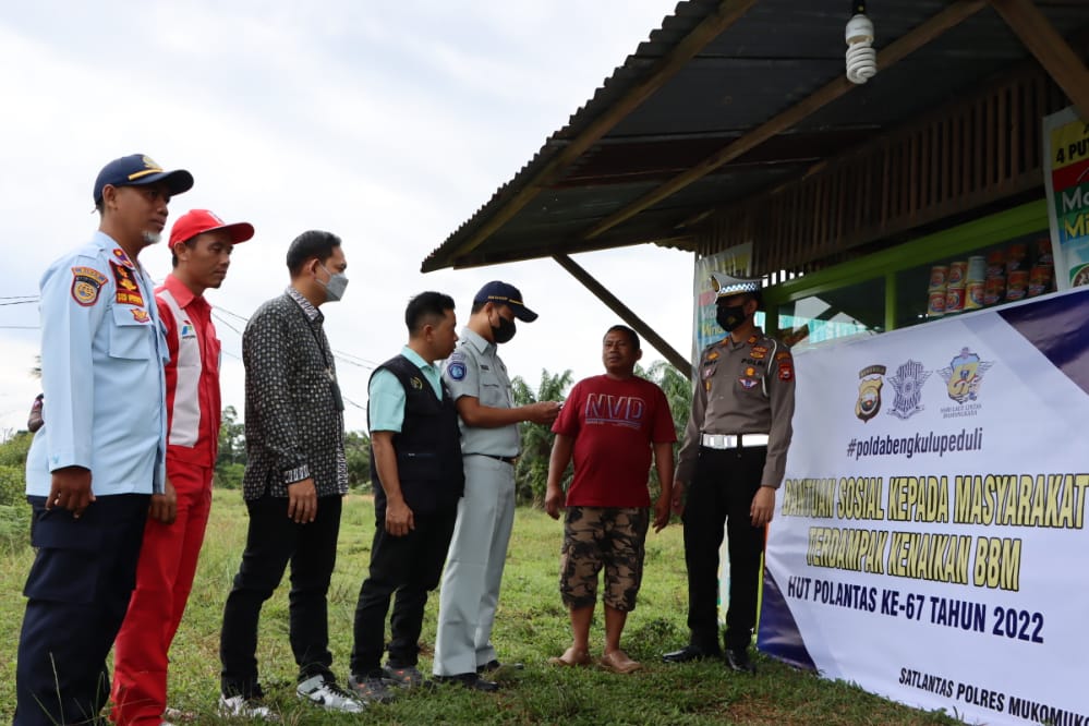 Mukomuko, Dutawarta.com - Menyikapi kebutuhan masyarakat terkait BBM, Polres Mukomuko kembali memberikan bantuan. Kali ini bukan paket sembako seperti sebelumnya, bekerjasama dengan perwakilan dari Bank Rakyat Indonesia (BRI) Kantor Cabang Mukomuko, Jasa Raharja Mukomuko, pihak SPBU Bandar Ratu, dan Bidang Perhubungan Dinas Pekerjaan Umum dan Penataan Ruang Mukomuko serta Ketua PWI Mukomuko memberikan kupon bbm bersubsidi pertalite langsung diberikan kepada masyarakat yang membutuhkan.