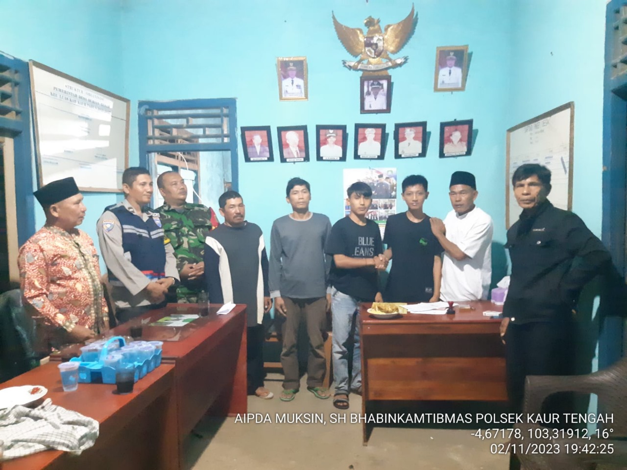 Kaur - Sinergi bersama Pihak Desa, Bhabinkamtibmas Polsek Kaur Tengah Polres Kaur Polda Bengkulu, malam hari kemarin, Kamis (02/11/2023) menggelar kegiatan problem solving yang menghadirkan kepolisian sebagai pemecah permasalahan ditengah masyarakat.