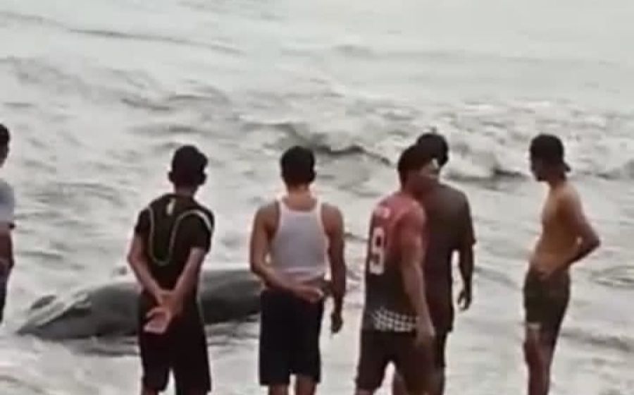 Ikan Paus Terdampar di Pantai Serangai Bengkulu Utara
