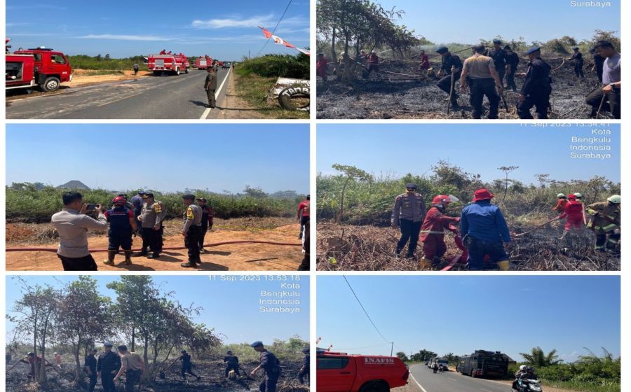Karhutla Lagi, Personel Polresta Bengkulu Bantu Padamkan Api