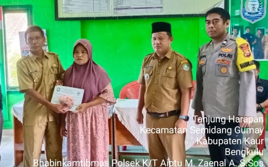 Bhabinkamtibmas Hadiri Pembagian BLT DD di Desa Tanjung Harapan