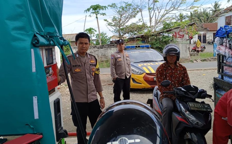 Personel Polsek Kota Manna Pantau Ketersediaan Stok BBM di SPBU Pasar Bawah Manna