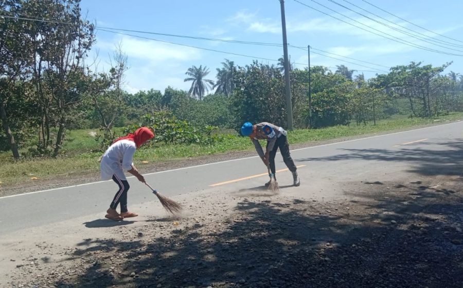Respon Cepat Polsek Kota Mukomuko Bersihkan jalan yang tertutupi material pasir dan keriki