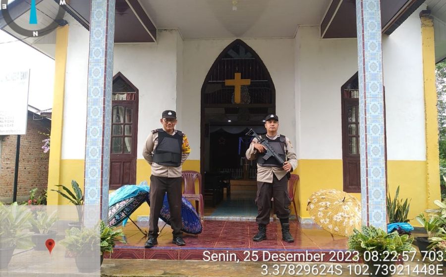 Polsek Padang Ulak Tanding Amankan Ibadah Natal 2023 di Gereja GKII Desa Kasie Kasubun