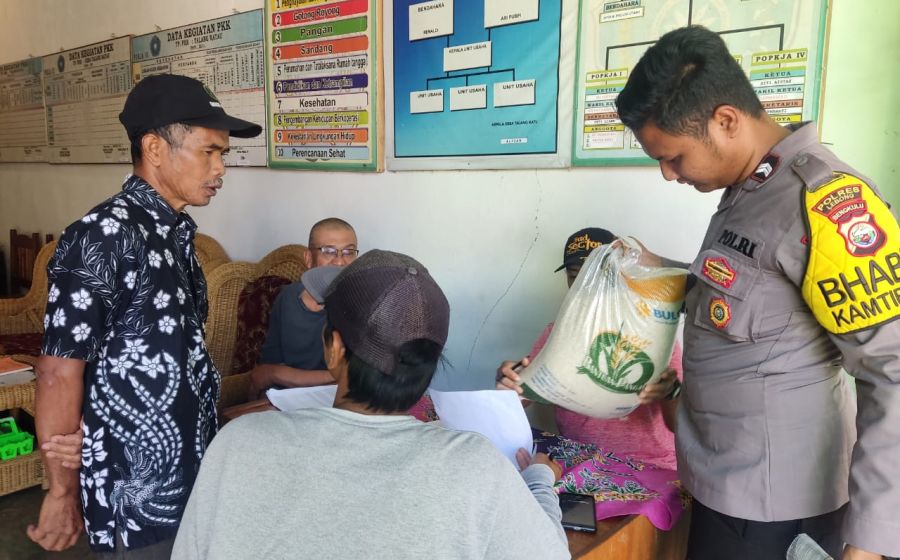 Bhabinkamtibmas Polsek Rimbo Pengadang Hadiri Penyaluran Distribusi Cadangan Beras Pemerintah untuk Bantuan Pangan