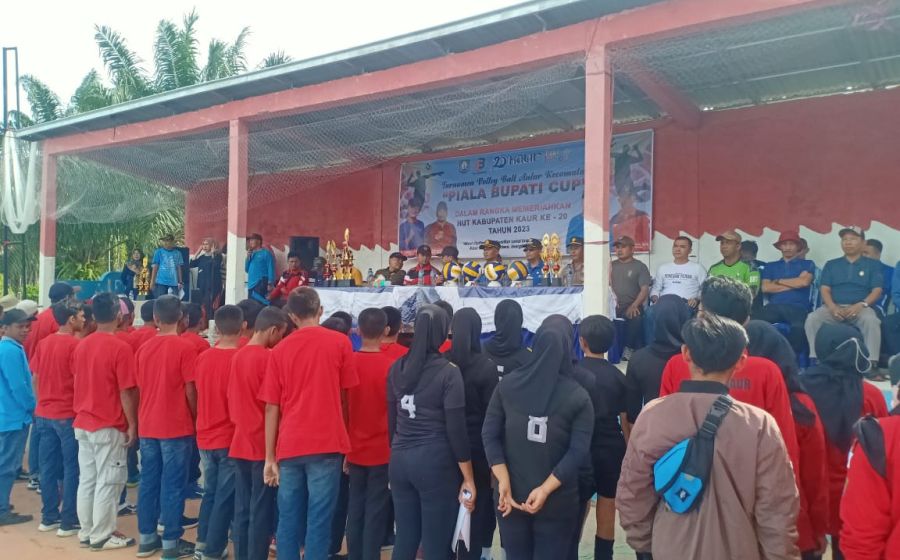 Polsek Tanjung Kemuning Monitoring Pembukaan Turnamen Bola Voli HUT Kaur Ke-20
