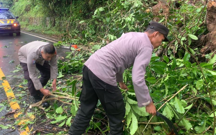 Polisi dan Warga Gotong Royong Evakuasi Pohon Tumbang di Jalan Lintas Bengkulu-Kepahiang