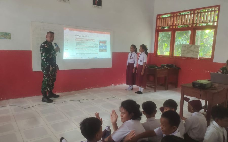 Satgas Pam Puter Berikan Edukasi Wawasan Kebangsaan untuk Anak Anak Pulau Terluar SDN 054 Desa Meok Enggano