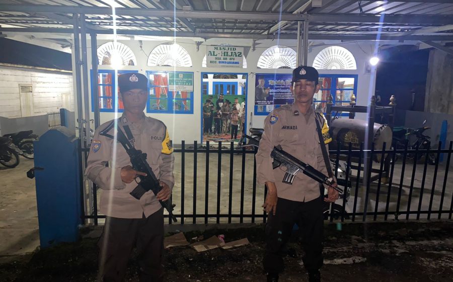 Personel Polsek PUT Jaga Masjid Saat Ibadah Salat Tarawih