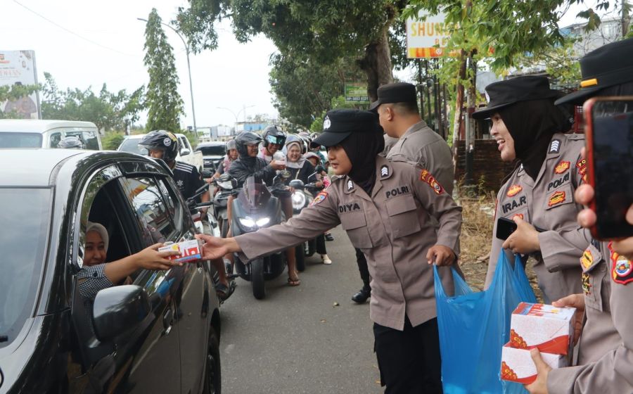 Ramadan Penuh Berkah, Polwan dan Polki Polda Bengkulu Turun Langsung Berbagi Takjil Gratis