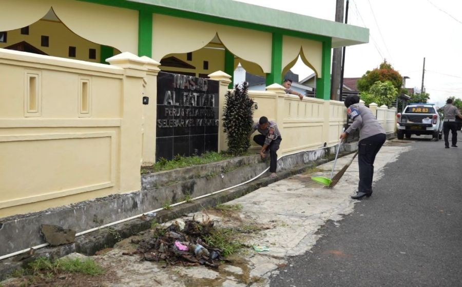 Bakti Sosial Masjid Sambut Ramadhan 1447 H, Sat PJR Ditlantas Polda Bengkulu Bersihkan Masjid Al Fattah