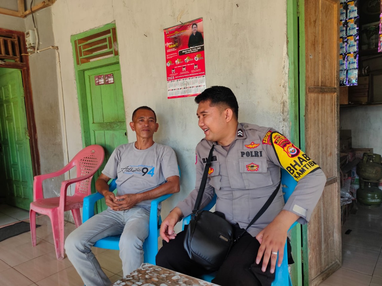 Bengkulu Tengah - Bhabinkamtibmas Polres Bengkulu Tengah, Briptu HR David Kurniawan melaksanakan kegiatan sambang di Desa Air Napal dan Desa Padang Burnai Kecamatan Bang Haji Kabupaten Bengkulu Tengah, Senin (21 Agustus 2023) pukul 10.30 WIB.