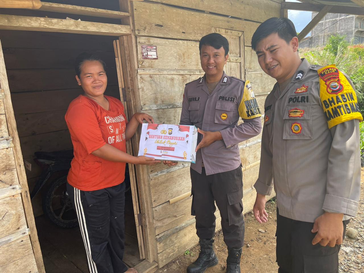 Kaur - Polsek Muara Sahung Polres Kaur Polda Bengkulu, melaksanakan program kegiatan Bantuan Kemanusiaan Untuk Negeri, Rabu (29/3/2023) siang. Bantuan Kemanusiaan Untuk Negeri ini disalurkan dalam bentuk Sembako kepada warga yang membutuhkan/kurang mampu diwilayah hukum Polsek Muara Sahung.